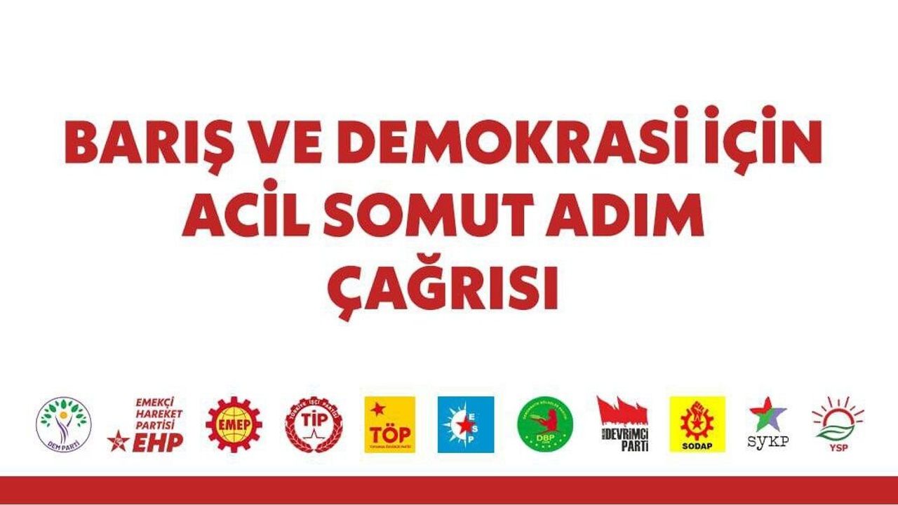 DEM Parti, Emekçi Hareket Partisi, Emek Partisi, Türkiye İşçi Partisi, Toplumsal Özgürlük Partisi, Ezilenlerin Sosyalist Partisi, Demokratik Bölgeler Partisi, Devrimci Parti, SODAP, SYKP ve Yeşil Sol Parti, Türkiye’de bir yılı aşkın süredir devam eden sürecin yeni bir aşamaya ulaştığını belirterek, barış ve demokratikleşme için somut adımların gecikmeden atılması çağrısında bulundu.