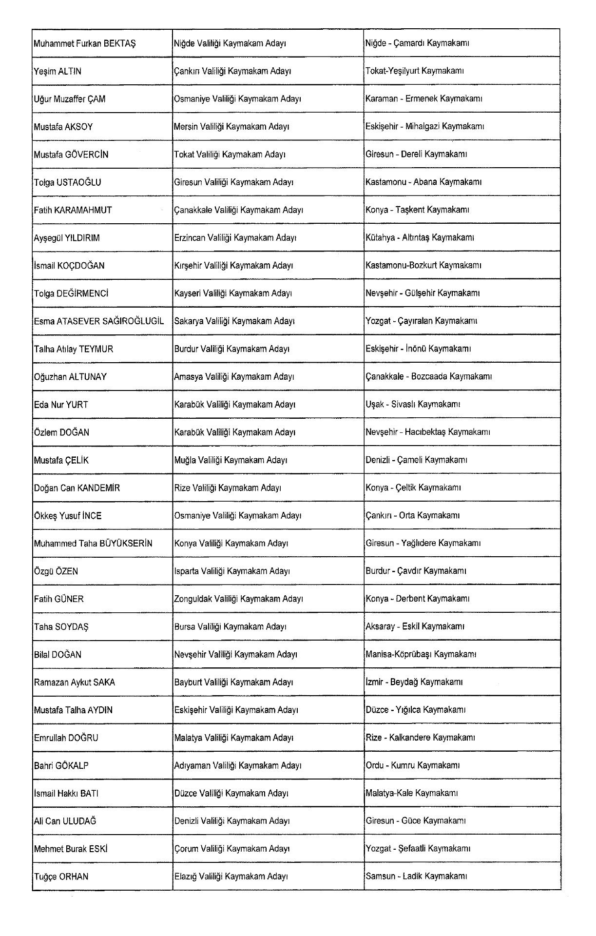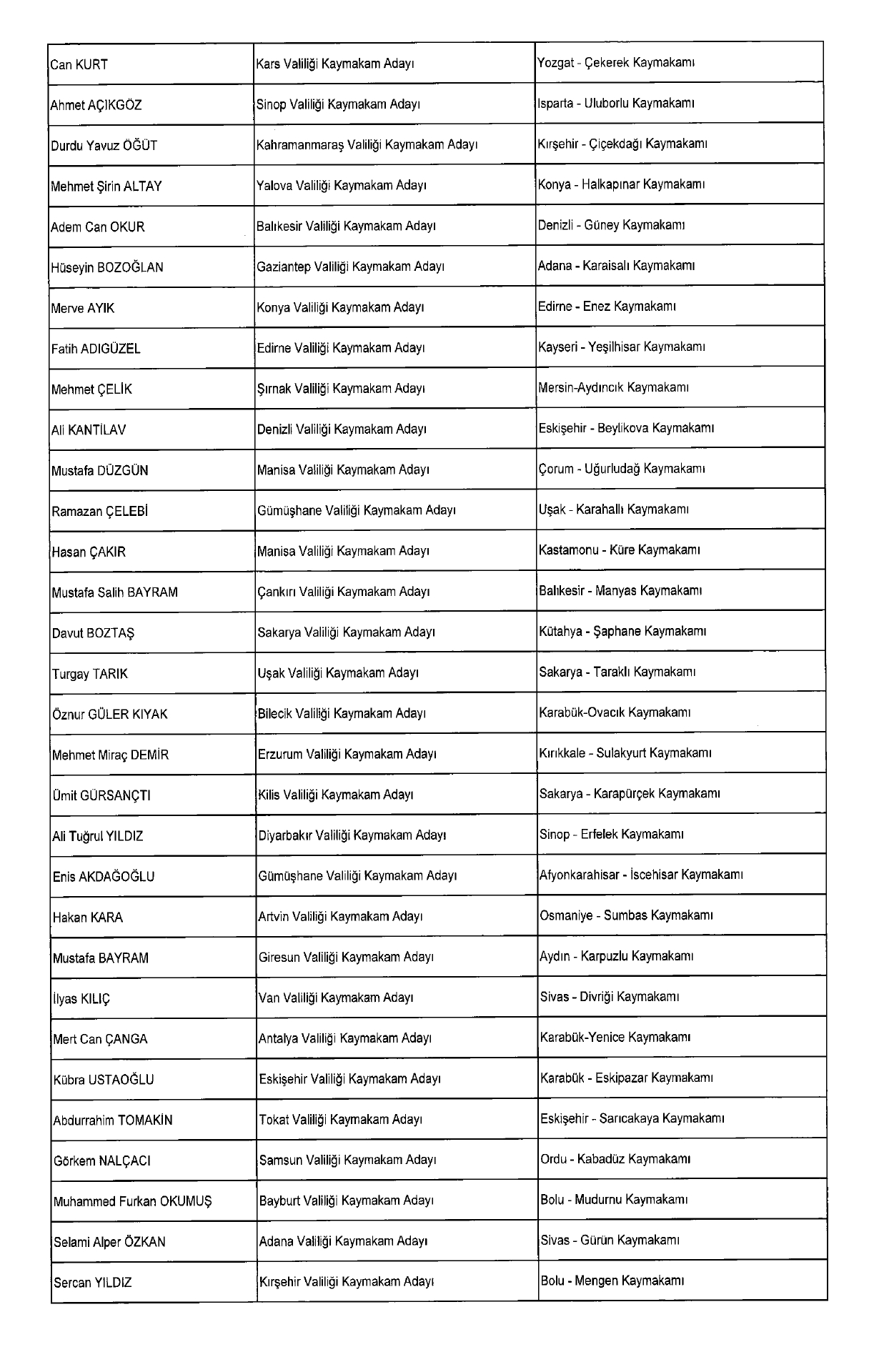 Öte yandan, Bayburt-Aydıntepe Kaymakamı Abdulkadir Nar, Siirt Valiliği Hukuk Müşaviri olarak görevlendirildi.