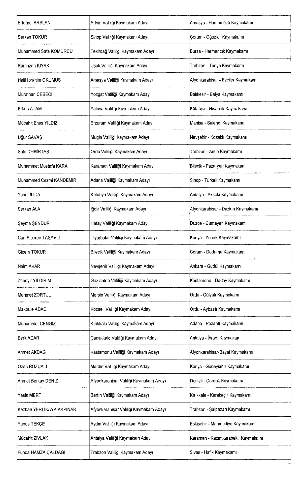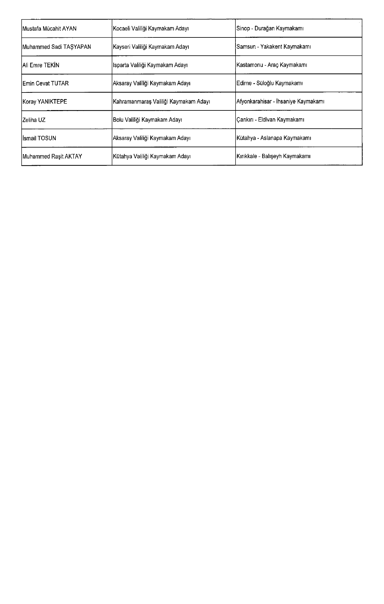 Kararnameyle yapılan bazı vali yardımcılığı atamaları şöyle: