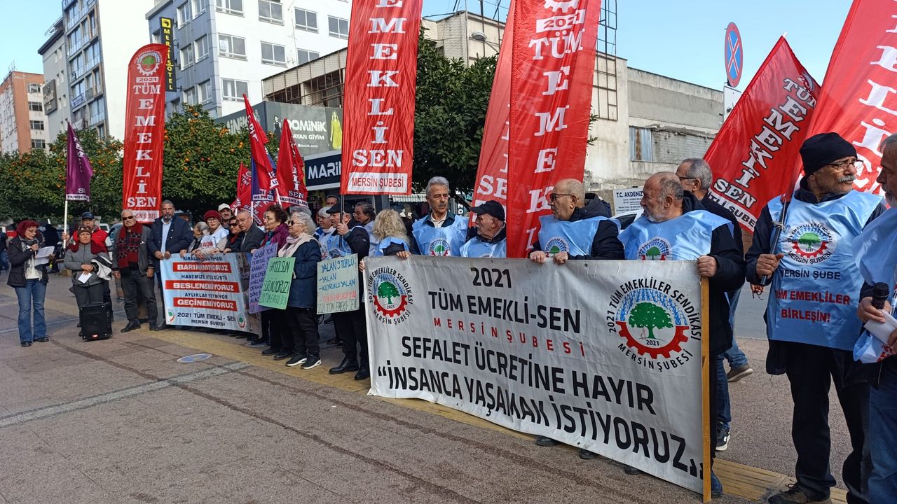 2021 Tüm Emekli-Sen Mersin Şubesi adına açıklama yapan Hüseyin Kurt, emeklilerin yıllardır süren hak mücadelesine dikkat çekerek, emekli sendikalarının kapatılmasının anayasa ve uluslararası hukuka aykırı olduğunu söyledi. Kurt, “Ülkemizde ilk emekli sendikası 1995 yılında kuruldu. Bu sendika, emeklileri ricacı konumdan çıkarıp hakkını talep eden bir özne hâline getirdi. Bu durumun iktidarları rahatsız etmesi kaçınılmazdı” dedi.