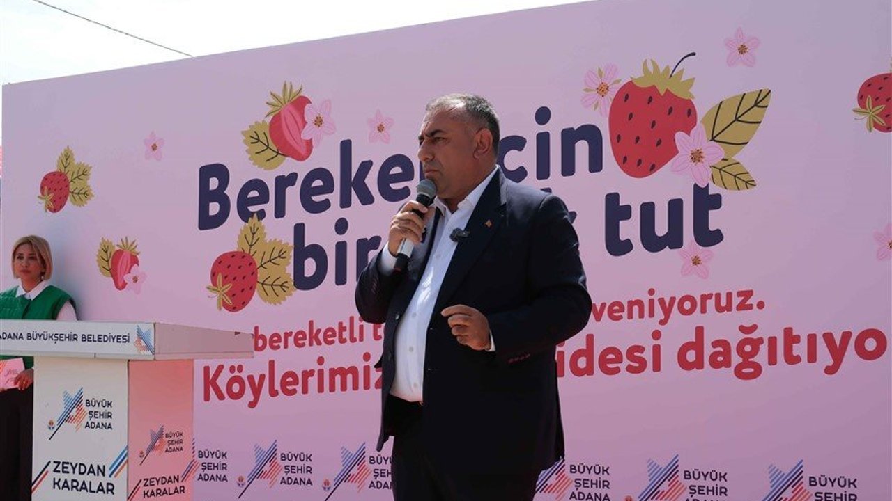 Çilek dağıtım Töreninde söz alan Adana Büyükşehir Belediyesi Başkan Vekili Güngör Geçer, Pozantı halkına ve muhtarlara Başkan Zeydan Karalar’ın selamlarını iletti.