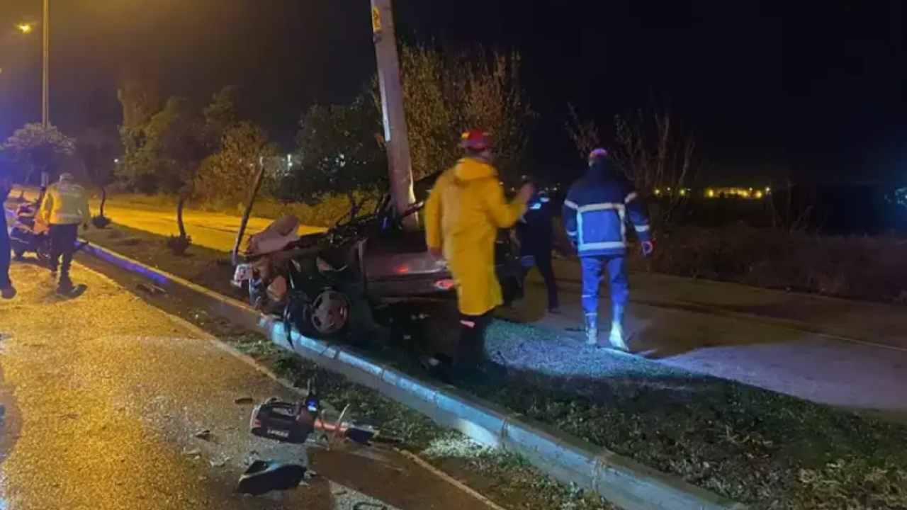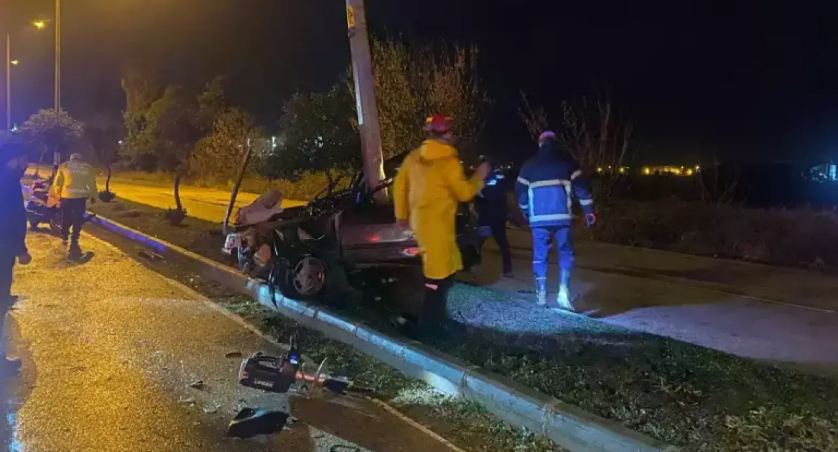 Yoldan çıkan otomobil, refüjde bulunan aydınlatma direğine çarptı. Çarpmanın etkisiyle araç adeta ikiye bölünürken, sürücü Seval E. ile yanında bulunan Çağatay D. araç içinde sıkıştı.