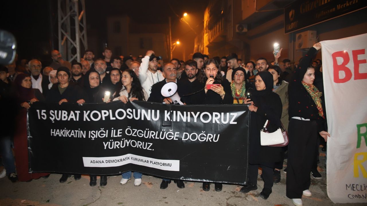 Adana’da 15 Şubat Uluslararası Komplosu’nun yıl dönümü dolayısıyla bir araya gelen Adana Demokratik Kurumlar Platformu bileşenleri, “Hakikatin Işığı ile Özgürlüğe Doğru” şiarıyla yürüyüş ve basın açıklaması yaptı. Etkinlikte, Abdullah Öcalan’ın 1999 yılında uluslararası bir operasyonla Türkiye’ye teslim edilmesinin Kürt halkı ve Türkiye siyaseti açısından tarihsel bir kırılma olduğu vurgulandı.