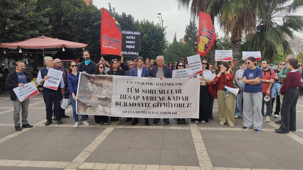 Katılımcılar, Hasan Alpargün Apartmanı davasında verilen “olası kast” kararının emsal olması için 20 Nisan’da Adana Bölge Adliye Mahkemesi önünde buluşma çağrısı yaptı.