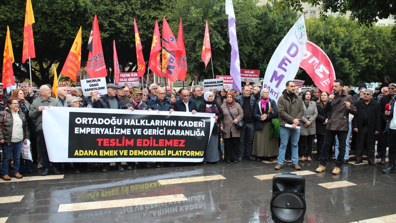 Adana Emek ve Demokrasi Platformu’nun İnönü Parkı’nda düzenlediği basın açıklamasında hukukçular, siyasetçiler ve demokratik kitle örgütleri temsilcileri, Rojava ve Suriye’de yaşananların bir savaş değil halklara karşı yürütülen planlı bir imha süreci olduğunu vurguladı. Konuşmalarda kuşatmaların kaldırılması, insani yardım koridorlarının açılması, SDG–Şam anlaşmasının desteklenmesi ve barışın Türkiye’ye de taşınması çağrısı öne çıktı.