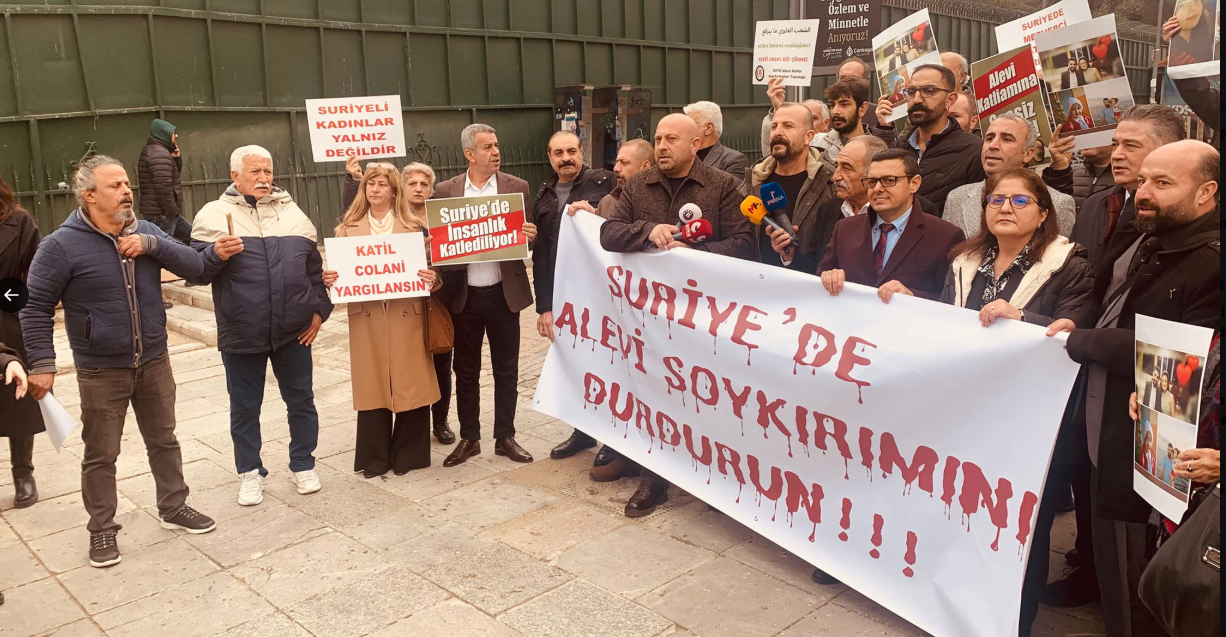Mersin, Adana ve Hatay’dan gelen Arap Alevi kurum temsilcileriyle birlikte Suriye’de Alevi Soykırımına dur demek için eylemdeyiz.