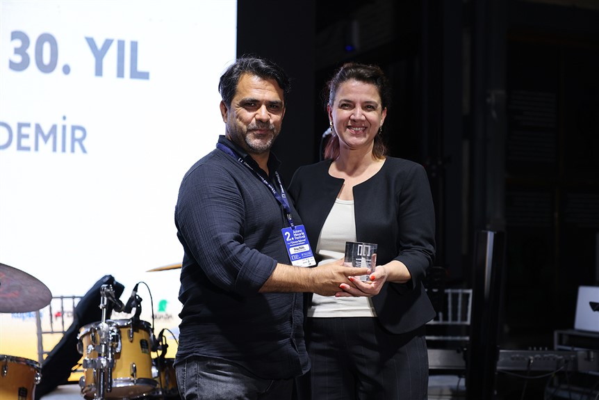 Rozet ve plaket töreninde konuşan Oda Başkanı Canan Aksu, “Bugün burada sadece bir festivali değil, bir mesleğin kuşaklar boyu süren hikâyesini kutluyoruz. Bir yanda 30, 40, 50 yıldır bu mesleğe emek vermiş büyüklerimiz var. Diğer yanda ise mesleğe yeni adım atan, heyecanı gözlerinden okunan genç meslektaşlarımız. Ve biz, bu iki ucu aynı çatı altında, “mimarlığın ortak diliyle” buluşturmanın mutluluğunu yaşıyoruz” dedi.