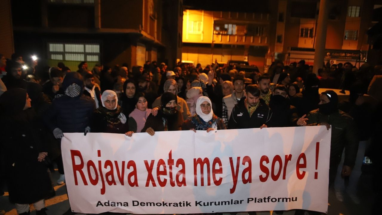 Adana Demokratik Kurumlar Platformu’nun çağrısıyla Dağlıoğlu Mahallesi’nde düzenlenen Rojava yürüyüşünde polis ablukası aşıldı. Binlerce kişi “Saldırılara dur de” ve “Rojava Xetameya Sore” talebiyle yürürken, DEM Parti Mersin Milletvekili Ali Bozan, “Bu ruh kazanacak, Kürt halkının direnişi kazanacak” dedi.