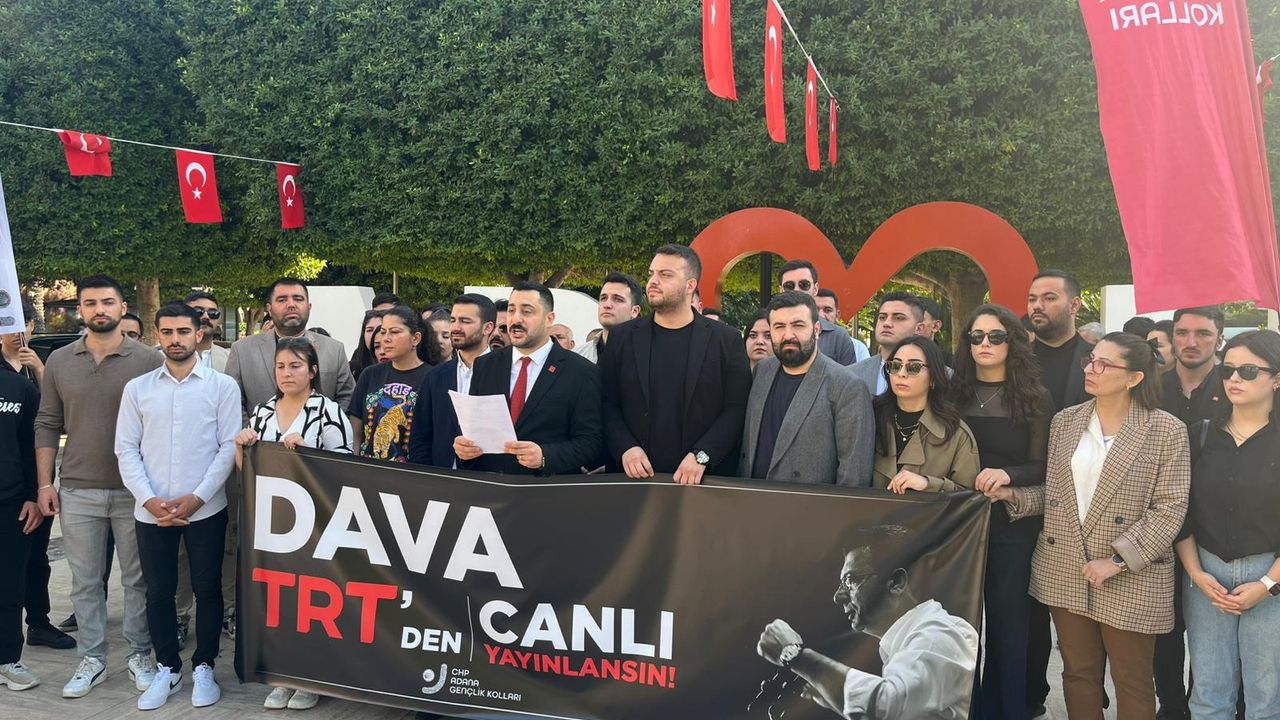 Adana’da yapılan açıklamayı CHP Adana İl Gençlik Kolları Başkanı Ahmet Tanık yaptı. Tanık, davanın TRT’de tüm Türkiye’nin göreceği bir şekilde canlı yayınlanması gerektiğini söyledi.