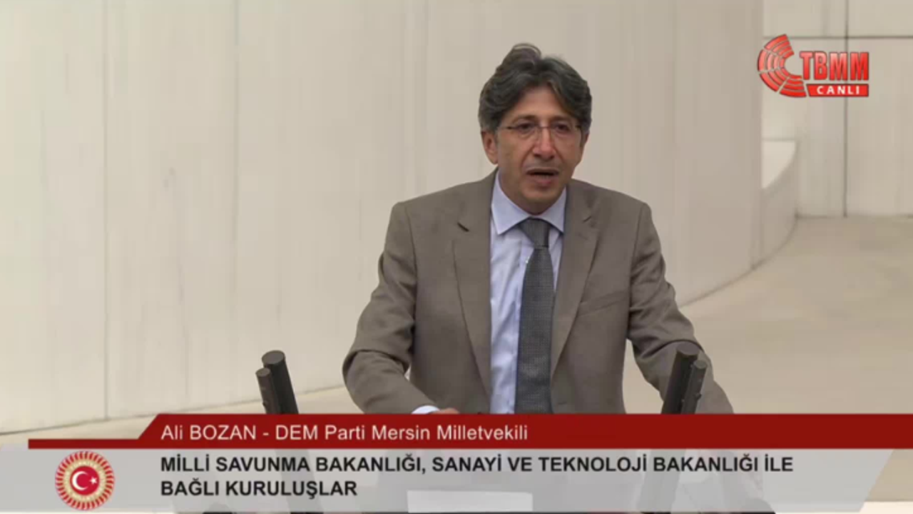 DEM Parti Mersin Milletvekili Ali Bozan, Milli Savunma Bakanlığı ile Sanayi ve Teknoloji Bakanlığı’nın 2026 yılı bütçelerinin görüşüldüğü Genel Kurul’da yaptığı konuşmada, “Bu bütçede asgari ücretli nerede, emekli nerede, üniversite öğrencileri nerede?” diye sordu.