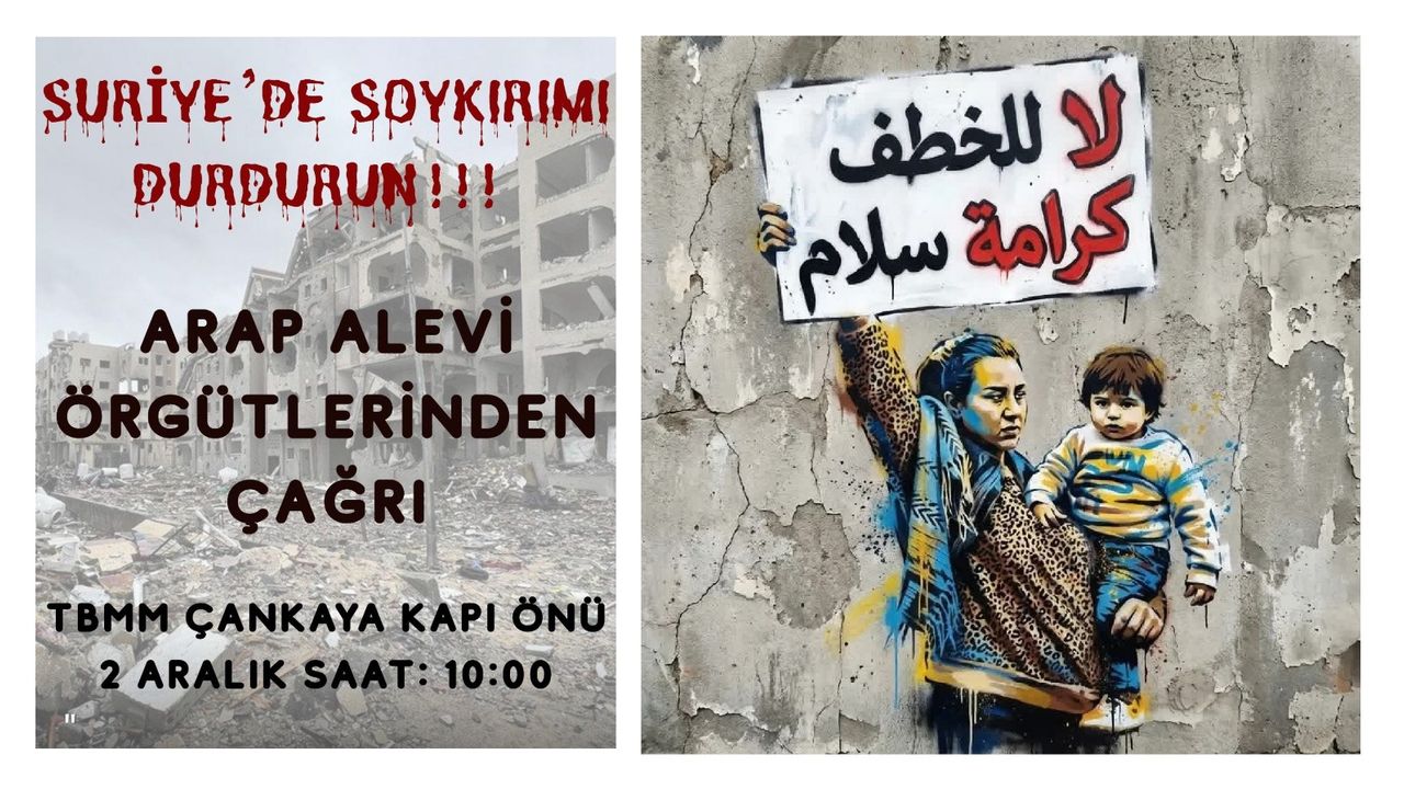 Suriye’de Alevi halkına yönelik katliam, zorunlu göç ve sistematik şiddet iddialarının derinleştiği bir dönemde Türkiye’deki Alevi kurumları, 2 Aralık’ta TBMM Çankaya Kapısı’nda yapılacak basın açıklaması için kamuoyuna acil çağrıda bulundu.