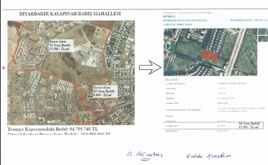 Bir diğer örnek olarak Diyarbakır Kayapınar Barış Mahallesi’ndeki değerleme farkını paylaşan Bakırlıoğlu, trampa işleminde 9 bin TL olarak değerlendirilen Hazine arazilerinin, aynı mahallede Emlak Yönetim tarafından 17.700 TL muhammen bedelle açık artırmaya çıkarıldığını ve 33 bin TL’ye satıldığını hatırlattı. “Aynı mahallede dört kat fiyat farkı var” diyen Bakırlıoğlu, bu bilgileri de savcılığa sunduklarını kaydetti.