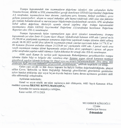 TBMM Plan ve Bütçe Komisyonu Üyesi, CHP Manisa Milletvekili Ahmet Vehbi Bakırlıoğlu, Kentsel Dönüşüm Başkanlığı Taşınmaz ve Kaynak Geliştirme Genel Müdürlüğü’nün Malatya’daki 187 dükkana karşılık, Çeşme, Alaçatı, Didim gibi gözde bölgelerdeki 15 kamu arazisiyle takas edilmesini önce ülke gündemine sonra da mahkemeye taşımıştı. Bakırlıoğlu’na Cumhuriyet Başsavcılığından ‘işleme konulmamasın’' dair karar ulaştı. Bakırlıoğlu karara tepki gösterirken; bu parsellerin İzmir Doğanlar, İzmir Çeşme, Diyarbakır, Gaziantep ve Aydın Didim gibi bölgelerde, kamuya ait Hazine arsalarının gerçek değerinin çok altında fiyatlandırıldığını, buna karşın Malatya’daki 187 dükkânın olması gerekenden çok yüksek bedelle değerlendirildiğini söyleyerek ciddi bir kamu zararı oluştuğu tespitini yineledi.