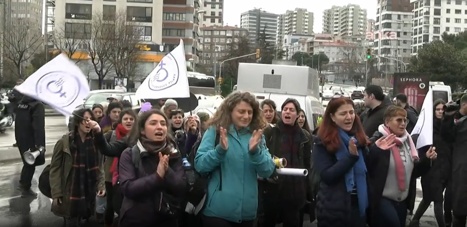 Kadıköy’de yapılan açıklama sırasında kolluk güçlerinin sloganlara ve yürüyüşe müdahalesine de tepki gösterilen açıklamada, bu tutumun “AKP-MHP iktidarının cihatçı yapılara yaklaşımını özetlediği” ifade edildi.