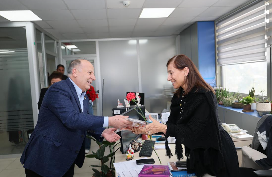 Yüreğir Belediye Başkanı Ali Demirçalı, 8 Mart Dünya Emekçi Kadınlar Günü dolayısıyla belediye hizmet binasında görev yapan kadın çalışanları ziyaret ederek günlerini kutladı.