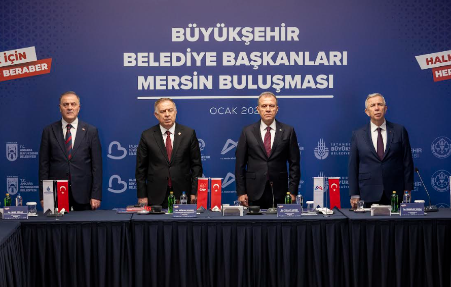 ‘Cumhuriyet Halk Partili (CHP) Büyükşehir Belediye Başkanları Mersin Buluşması’, ‘Halk İçin Hep Beraber’ sloganıyla büyükşehir belediye başkanlarının katılımıyla gerçekleşti. Toplantıda belediyelerin 2025 yılı hizmetleri değerlendirilirken; 2026 yılına yönelik çalışmaları kapsamlı şekilde ele alındı. Tutuklu belediye başkanları, yoksullukla mücadele, global ve ulusal siyasetin ülkeye etkisi, belediyelere kayyım atanması, devam eden operasyonlar ve kuraklıkla mücadele de toplantı gündeminde yer aldı.