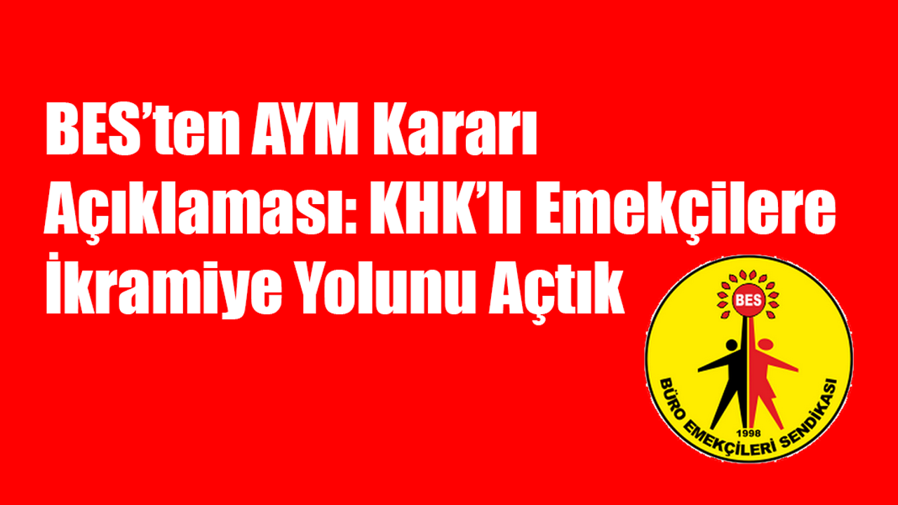 Büro Emekçileri Sendikası (BES), hizmet birleştirmesi ile 25 yıldan fazla çalışmasına rağmen memuriyette 25 yılını doldurmadığı gerekçesiyle emekli ikramiyesi ödenmeyen KHK’lı üyesi adına açtığı davada Anayasa Mahkemesi’nin emsal bir karar verdiğini duyurdu.