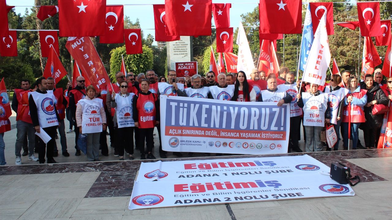 Birleşik Kamu-İş Konfederasyonu’na bağlı sendikalara üye kamu emekçileri, AKP iktidarının emekçiyi yoksullaştıran bütçe ve ekonomi politikalarına karşı Adana’da iş bıraktı. Atatürk Parkı’nda konuşan Birleşik Kamu-İş Adana İl Başkanı Hakan Şen, “Sorumlusu olmadığımız krizin faturasını ödemeyi reddediyoruz” dedi.