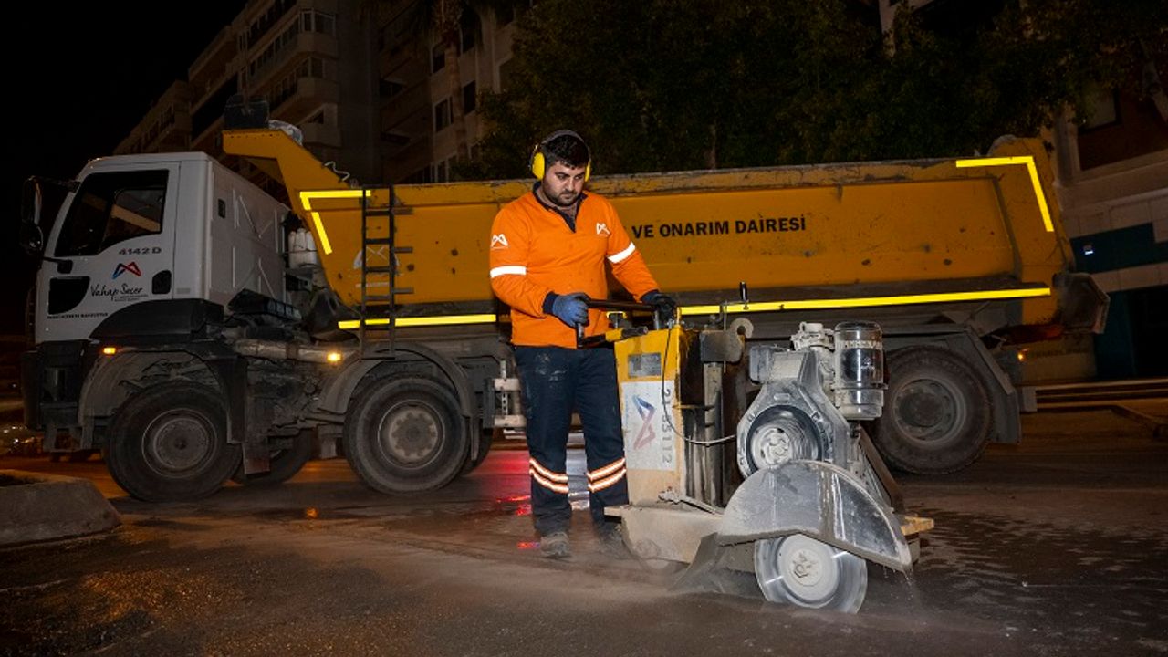 MERSİN BÜYÜKŞEHİR BELEDİYESİ, KULLANIM ÖZELLİĞİNİ KAYBEDEN ASFALTLARI GECE YENİLİYOR