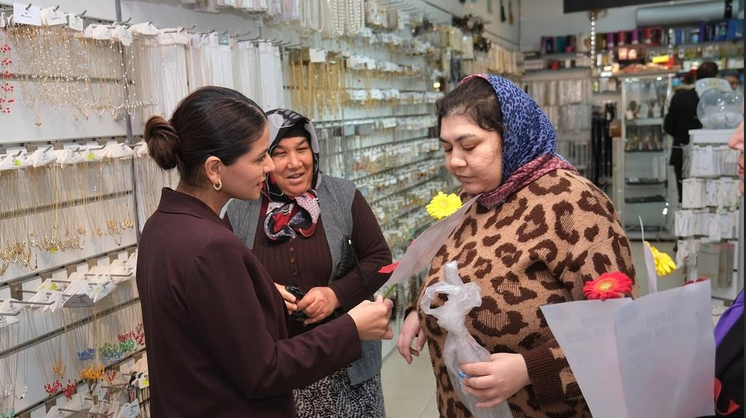 Çarşı esnafı ve vatandaşlarla bir araya gelen Yıldız ve Bilici, kadınların 8 Mart Dünya Kadınlar Günü’nü kutlayarak esnaf ve vatandaşlara çiçek takdim etti. Samimi sohbetlerin gerçekleştiği ziyarette, kadınların toplumsal hayattaki emeği ve katkısının önemine dikkat çekildi.