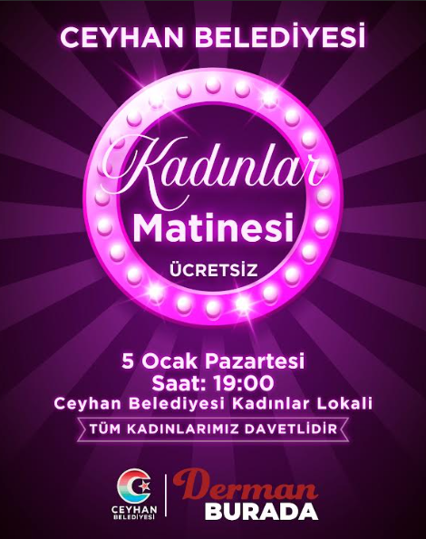 Ceyhan Belediyesi tarafından düzenlenen Kadınlar Matinesi’ne tüm kadınlar davetli olacak.