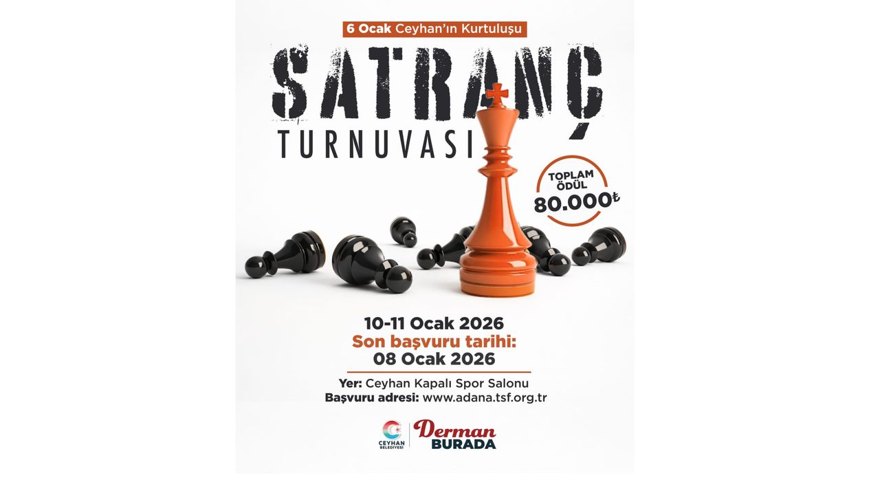 Ceyhan Belediyesi’nin destekleriyle, Türkiye Satranç Federasyonu iş birliğinde organize edilen turnuvaya katılmak isteyen sporcular, 8 Ocak 2026 tarihine kadar başvurularını www.adana.tsf.org.tr adresi üzerinden yapabilecek.