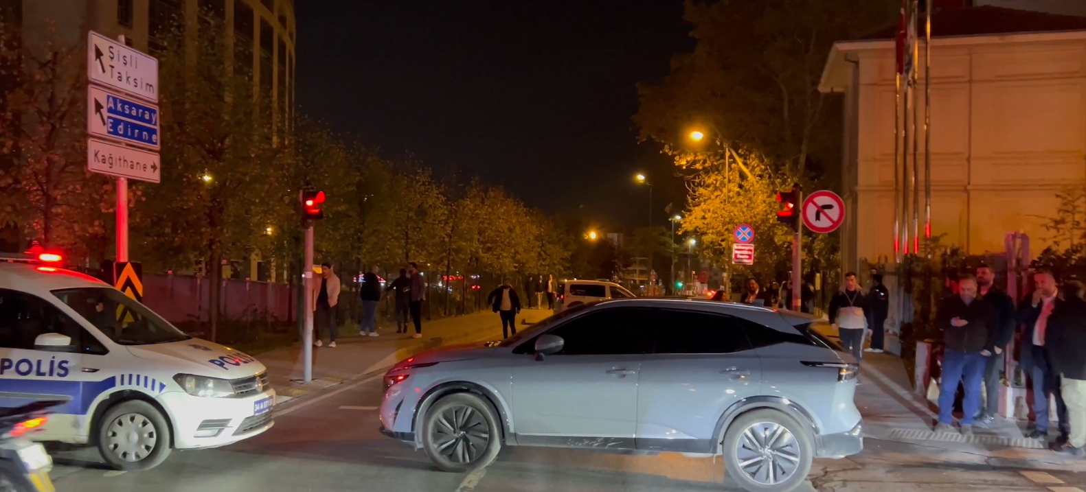 “Parti otobüsüyle Çağlayan Adliyesi’nin önünden geçmemize izin verilmiyor. Sivil bir araçla yolu kapattılar ve polisler ayrıldılar. Araç arızalı değil, polis tarafından durduruldu. Sahibi uzaklaştırıldı. Bu kanunsuz emri veren kim?”
