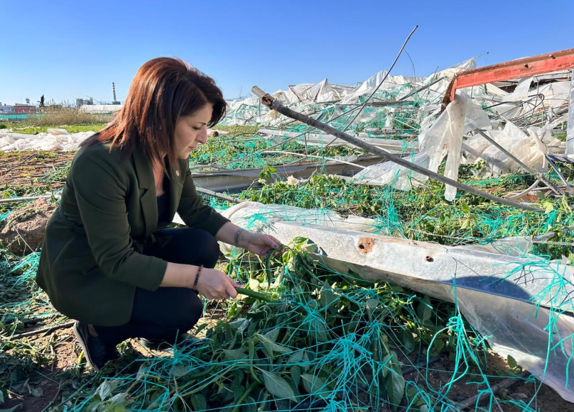 Ziyaret kapsamında konuşan Gülcan Kış, Kazanlı ve Adanalıoğlu’nda örtü altı üretimin büyük darbe aldığını vurgulayarak, “Bir gecede aylarca verilen emek yok oldu. Çiftçilerimiz seralarını, mahsullerini evlatları gibi büyütüyor. Bu fırtına yalnızca ürünleri değil, üreticimizin bir yıllık geçimini de aldı götürdü” dedi. Seralarda plastik örtülerin parçalandığını, demir konstrüksiyonların çöktüğünü ve ürünlerin büyük bölümünün tamamen kullanılamaz hâle geldiğini belirten Kış, zararın sanılandan çok daha büyük olduğunu ifade etti.