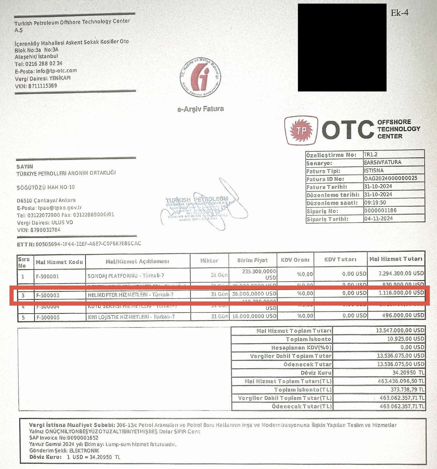 CHP Genel Başkan Yardımcısı Deniz Yavuzyılmaz, Türkiye Petrolleri Anonim Ortaklığı’nın (TPAO) alt şirketi TP-Offshore Technology Center’in (TP-OTC), Katar ortaklı Redstar adlı firmadan aylık 1 milyon 116 bin dolara helikopter kiraladığını açıkladı. Yavuzyılmaz, bu tutarın bir yıl içinde helikopter satın almaya yeteceğini belirterek, “Bu yapılan soygundur” dedi.