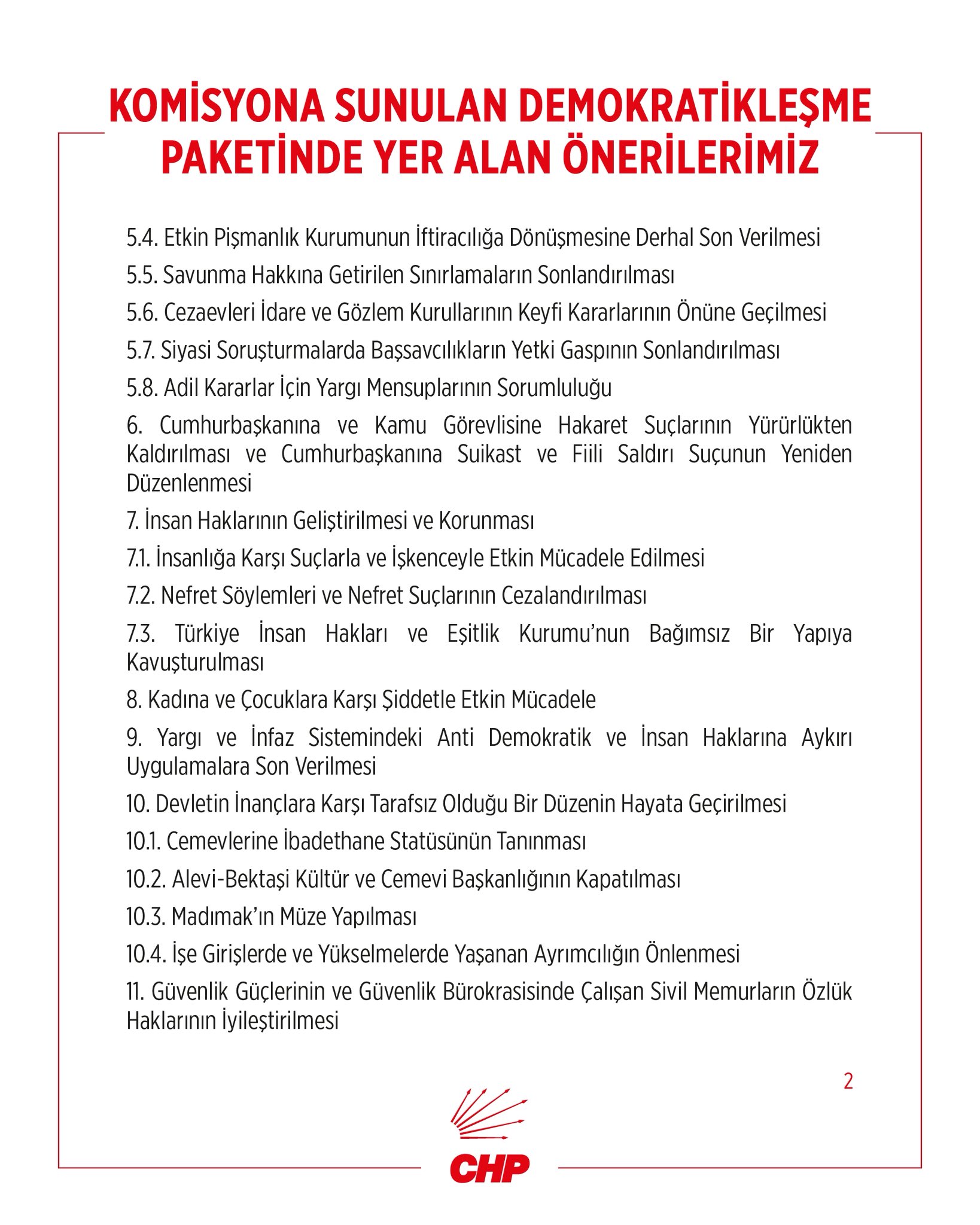 CHP’nin Komisyona sunduğu pakette öne çıkan başlıklar şöyle: