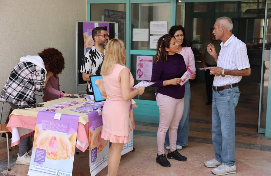 Cerrahi Hastalıkları Hemşireliği Anabilim Dalı öğretim üyeleri Prof. Dr. Sevban Arslan, Prof. Dr. Sevilay Erden, Dr. Öğr. Üyesi Açelya Türkmen, Dr. Öğr. Üyesi Muaz Gülşen, Arş. Gör. Dr. Nursevim Aydıngülü ve Arş. Gör. Dr. İlknur Tura tarafından meme kanserine dair önemli bilgiler paylaşıldı, katılımcıların soruları yanıtlandı ve bilgilendirici broşürler dağıtıldı.