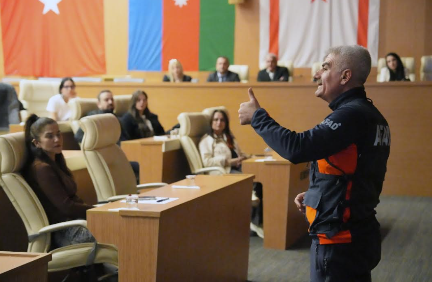 AFAD eğitmeni tarafından verilen eğitimde afet bilincinin önemine dikkat çekilerek bireylerin ve kurumların afetlere karşı hazırlıklı olmasının hayati önem taşıdığı vurgulandı. Katılımcılara afet anında panik yapılmaması, doğru tahliye yöntemleri, kriz anlarında uygulanması gereken temel güvenlik kuralları ve afet sonrası süreçlere ilişkin önemli bilgiler paylaşıldı.