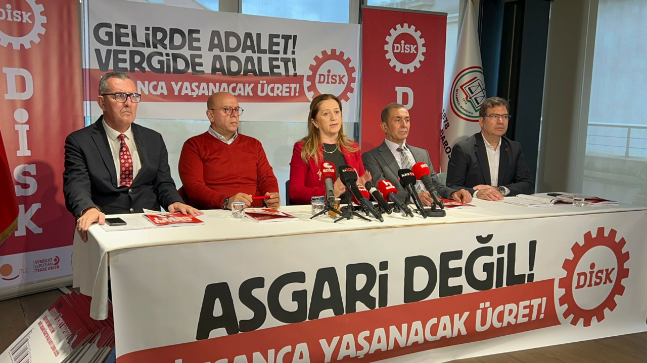 DİSK, 2026 yılı asgari ücretine ilişkin taleplerini ve DİSK-AR tarafından hazırlanan Asgari Ücret Araştırması raporunu İstanbul Barosu’nda düzenlenen basın toplantısıyla duyurdu. Toplantıya DİSK Genel Başkanı Arzu Çerkezoğlu, Genel Sekreter Tayfun Görgün, Genel Başkan Yardımcıları Alaaddin Sarı ve Özkan Atar, Yönetim Kurulu Üyesi Şükret Sevgener, İstanbul Bölge Temsilcisi Asalettin Arslanoğlu ve sendika temsilcileri katıldı.