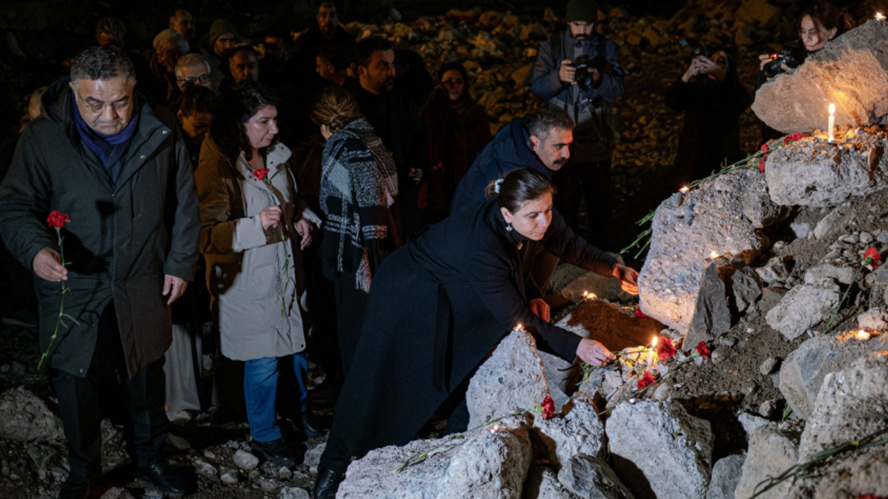 Depremin meydana geldiği saat olan 04.17’de yapılan anmada, enkaz alanında mumlar yakıldı, yaşamını yitirenler için karanfiller bırakıldı.