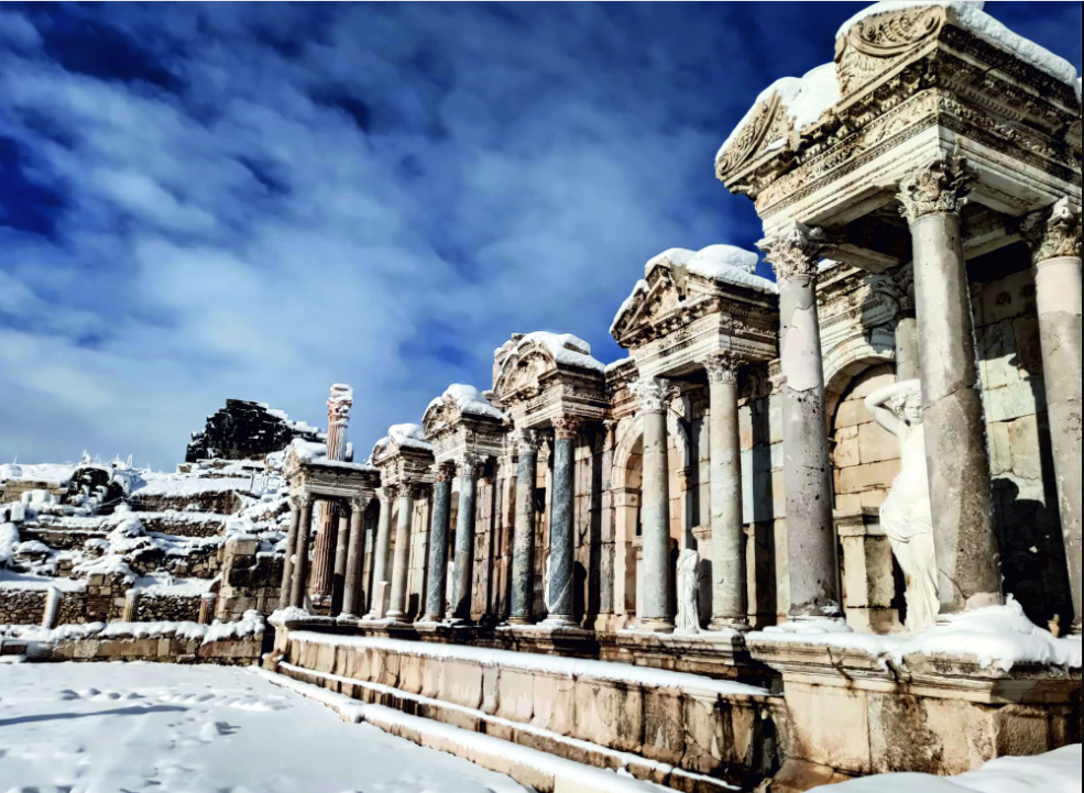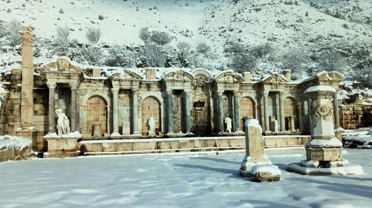 Toroslar’ın zirvesinde, bulutların arasındaki şehir Sagalassos’ta, 1800 yıllık bir uykudan uyanış hikayesi yazılıyor. Antik kentin en görkemli yapısı Antoninler Çeşmesi’nin (Nymphaeum) zamana yenik düşen parçaları, Efesus Stone’un doğaltaş sponsorluğu kapsamında temin ettiği blok mermerlerle tamamlanıyor. Roma döneminin mühendislik harikası, bu kurumsal iş birliğiyle özgün dokusuna en yakın malzemeyle yeniden ayağa kalkıyor.