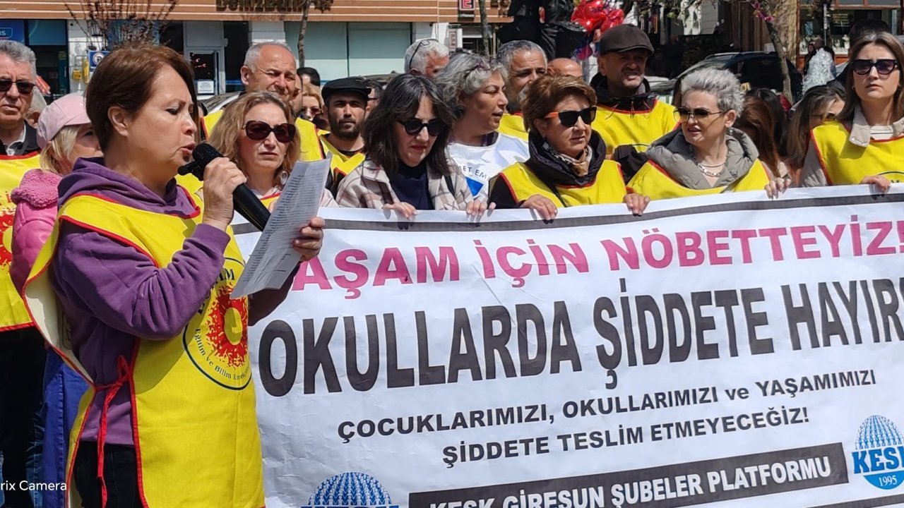 Açıklamada, Millî Eğitim Bakanlığı önünde başlatılan “yaşam nöbeti”nin eğitim emekçilerinin güvenli ve insanca yaşam talebinin güçlü bir ifadesi olduğu vurgulandı. Giresun’dan bu nöbete destek verildiği belirtilerek, Ankara’daki mücadeleyle eş zamanlı olarak ülkenin dört bir yanında seslerin yükseltildiği ifade edildi.
