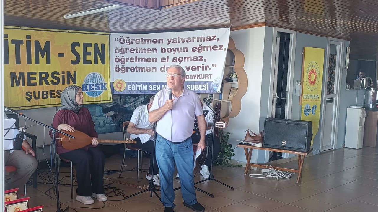 Eğitim-Sen Mersin Şubesi, 5 Ekim Dünya Öğretmenler Günü dolayısıyla bir etkinlik düzenledi. Programda emekli üyeler için plaket töreni gerçekleştirilirken, öğretmenlerin eğitim mücadelesine verdikleri katkılar için teşekkür edildi.