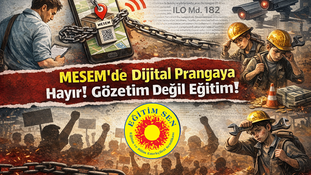 Eğitim Sen, çocukların ucuz iş gücü olarak görüldüğü ve öğretmenlerin dijital araçlarla denetlendiği bir sistemin ne eğitim ne de kamusal hizmet olarak kabul edilemeyeceğini belirterek, MESEM üzerinden kurulan bu denetim rejimine karşı mücadele çağrısı yaptı.