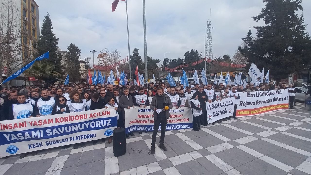 Urfa – Urfa Emek ve Demokrasi Platformu, Kobanê’de derinleşen insani krize dikkat çekmek ve insani yaşam koridorunun derhal açılması talebiyle Suruç Meydanı’nda kitlesel bir basın açıklaması gerçekleştirdi. Çok sayıda emek, meslek ve hukuk örgütünün katıldığı açıklamada, sınırın hemen ötesinde çocukların, kadınların ve yaşlıların temel yaşam ihtiyaçlarından mahrum bırakıldığı vurgulanarak, bu tablo karşısında sessiz kalınmayacağı belirtildi.