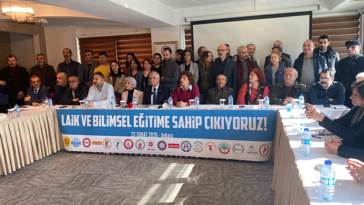 Emek, meslek ve demokrasi örgütleri, 23 Şubat 2026 tarihinde Alba Hotel’de saat 11.00’de “Laik ve Bilimsel Eğitime Sahip Çıkıyoruz!” başlıklı ortak bir basın açıklaması gerçekleştirdi. Açıklamayı Eğitim Sen Başkanı Kemal Irmak okudu.