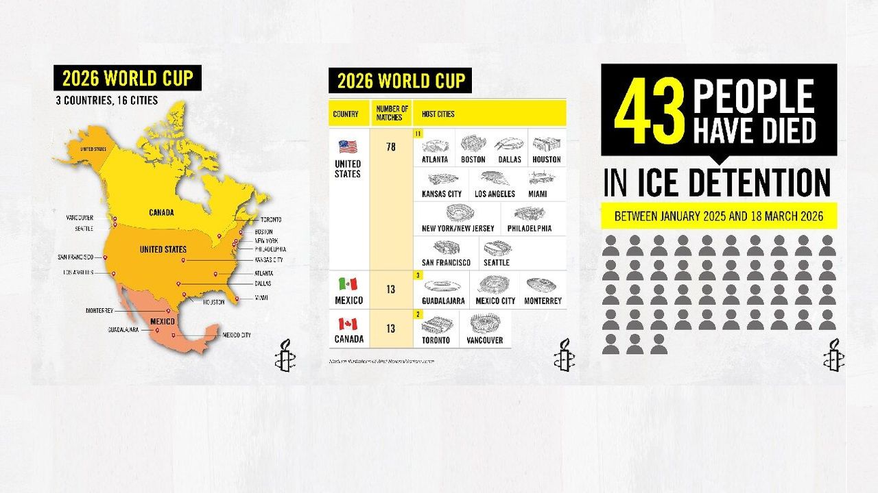 Uluslararası Af Örgütü’nün İnsanlık Kazanmalı: 2026 FIFA Dünya Kupası’nda hakları savunmak, baskılarla başa çıkmak başlıklı yeni raporu, turnuvaya ev sahipliği yapan üç ülkede taraftarların, futbolcuların, gazetecilerin, işçilerin ve yerel toplulukların karşı karşıya olduğu ciddi riskleri ve etkileri inceliyor. Dünya Kupası maçlarının dörtte üçünün oynanacağı ABD, Trump yönetiminde ayrımcı göç politikalarının, toplu halde gözetim altında tutmanın, Göç ve Gümrük Muhafaza Kurumu (ICE), Gümrük ve Sınır Koruma Kurumu (CBP) ile diğer kolluk kuvvetlerinden maskeli ve silahlı görevliler tarafından gerçekleştirilen keyfi gözaltıların damga vurduğu bir insan hakları acil durumu yaşıyor.