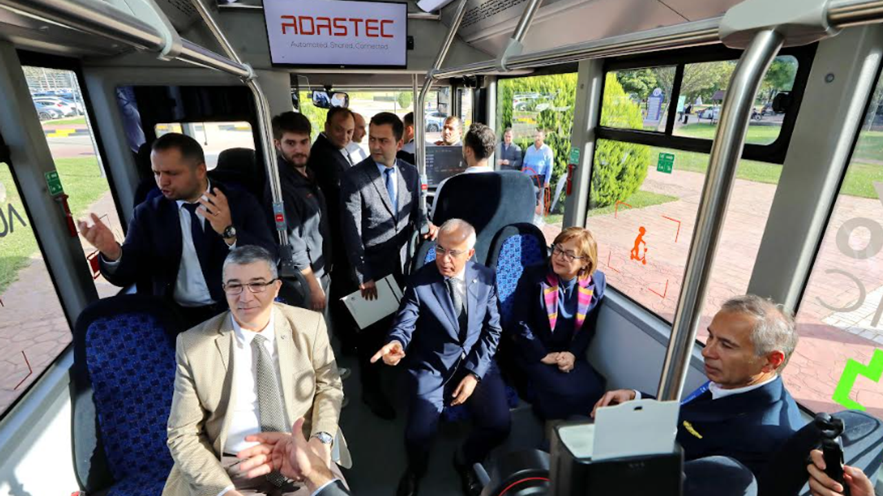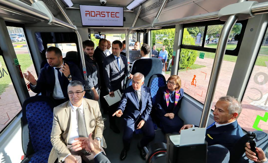 250 kilometre menzili olup 3 saatte şarj olabilen araçları inceleyen protokol, daha sonra test aşamasında olan otonom özellikli elektrikli araçla Gaziantep Üniversitesi içerisinde kısa bir seyahat gerçekleştirdi.