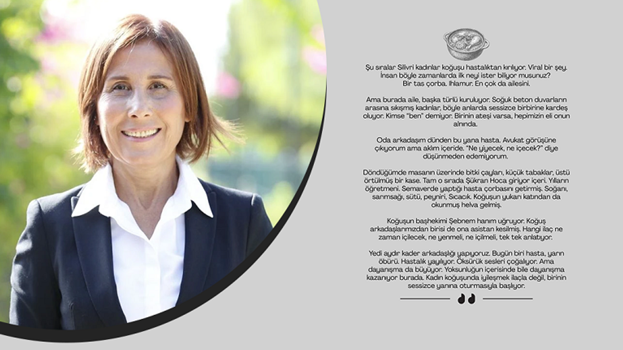 Tekin, “Yedi aydır kader arkadaşlığı yapıyoruz. Bugün biri hasta, yarın öbürü. Hastalık yayılıyor ama dayanışma da büyüyor. Kadın koğuşunda iyileşmek ilaçla değil, birinin sessizce yanına oturmasıyla başlıyor” sözleriyle, cezaevindeki dayanışmayı özetliyor.