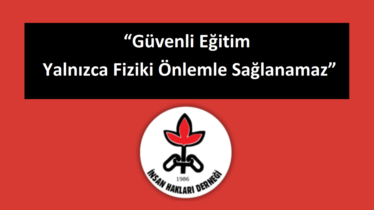 İHD İstanbul Şubesi, okulların demir kapılarla kapatılması, duvarların dikenli tellerle çevrilmesi gibi uygulamaların tek başına güvenli eğitim ortamı yaratamayacağını belirtti. Güvenliğin ancak psikolojik, sosyal ve pedagojik boyutları kapsayan bütüncül politikalarla sağlanabileceği kaydedildi.