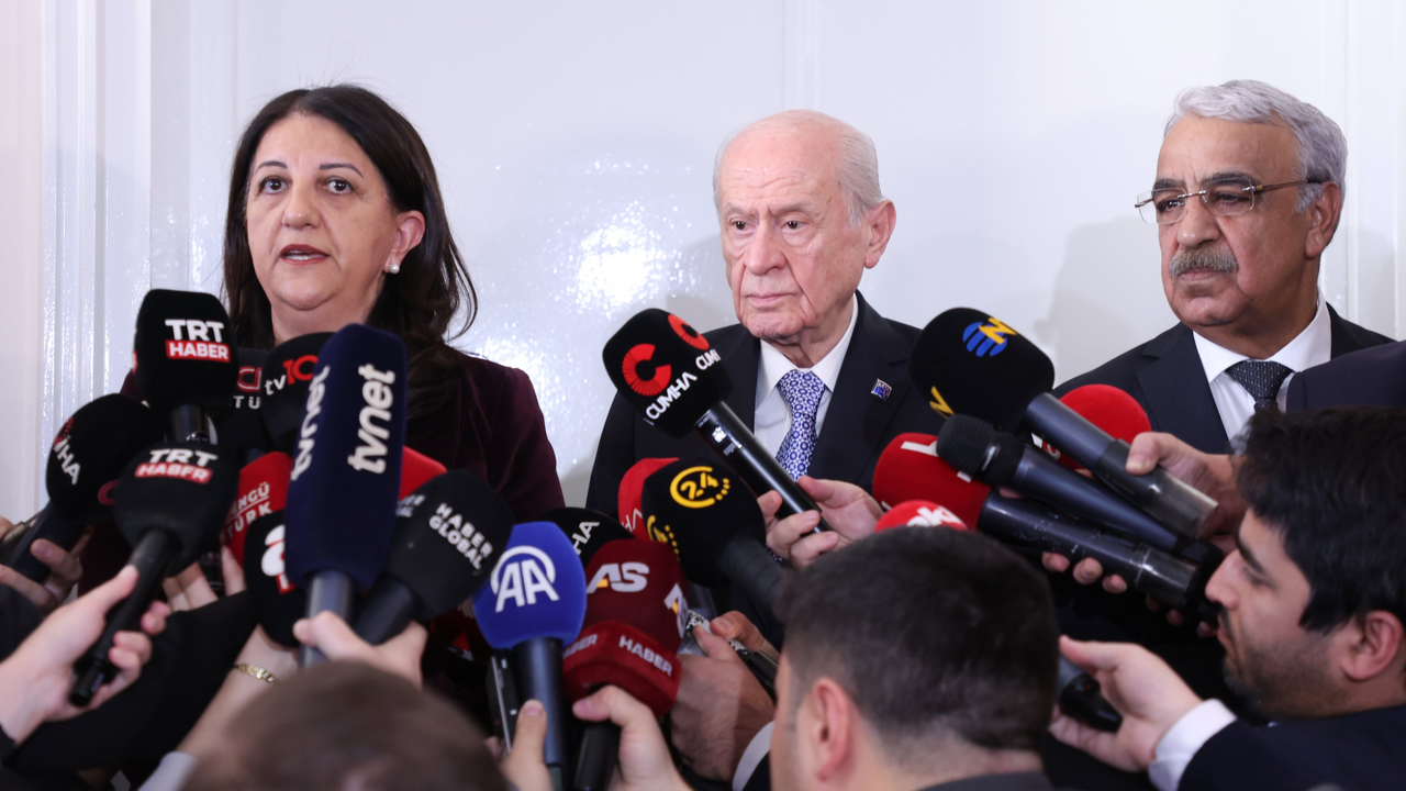 DEM Parti İmralı Heyeti, MHP Genel Başkanı Devlet Bahçeli ile TBMM’de kritik bir görüşme gerçekleştirdi. Pervin Buldan, görüşmenin “çok verimli” geçtiğini ve sürecin artık yasal zemine kavuşması gerektiğini vurguladı.