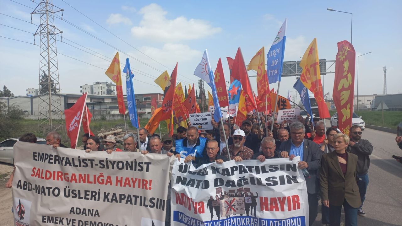 Adana başta olmak üzere Mersin, Hatay ve Osmaniye’den çok sayıda sendika, siyasi parti ve demokratik kitle örgütü temsilcisi, İncirlik Üssü önünde bir araya geldi. Yürüyüş boyunca ABD ve NATO karşıtı sloganlar atan kitle, Türkiye’nin emperyalist politikaların bir parçası haline getirildiğini savundu.
