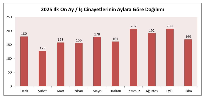 Böylece 2025’in ilk 10 ayında en az 1737 işçi iş cinayetlerinde yaşamını yitirdi.