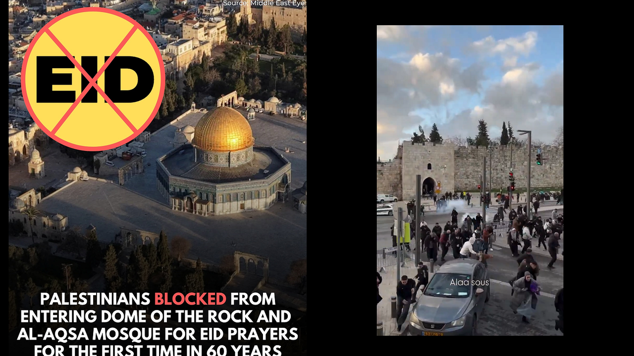 Filistinliler, Ramazan Bayramı’nın ilk sabahında, uzun süredir kapalı tutulan Mescid-i Aksa’ya ulaşamayınca kutsal mabedin kapılarında toplanarak namaz kılmak istedi. Ancak İsrail polisi ve güvenlik güçleri, ibadet etmek isteyen kalabalığa müdahale ederek toplanmayı dağıttı.