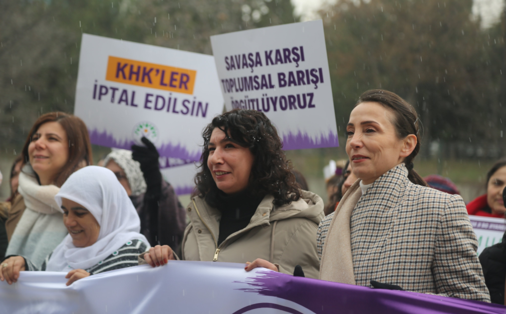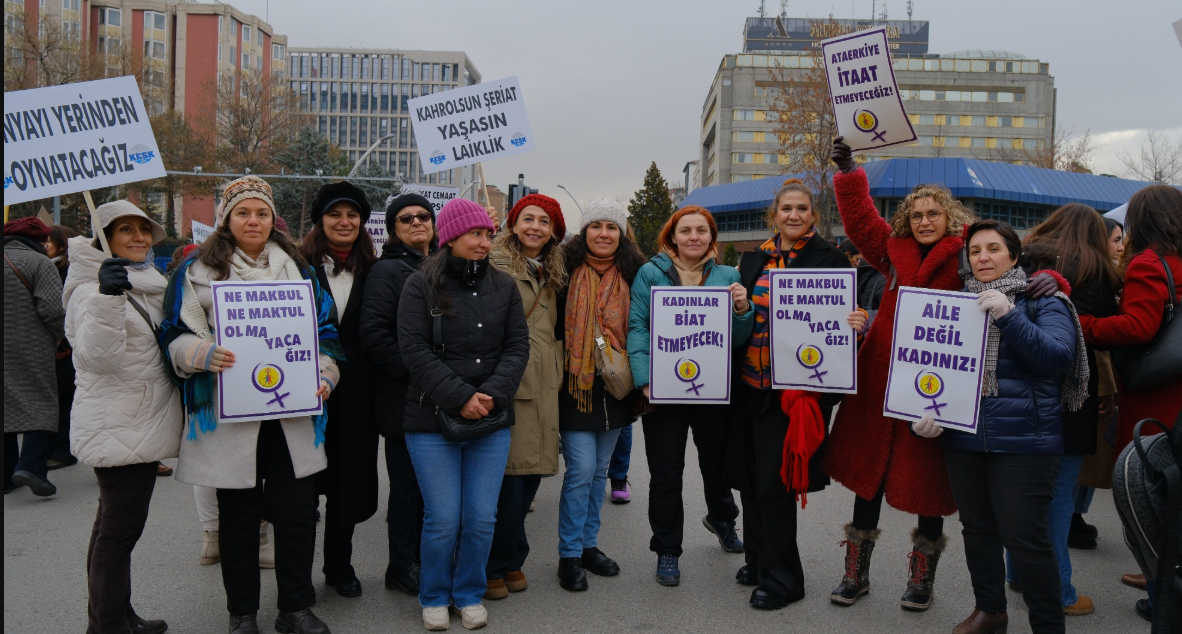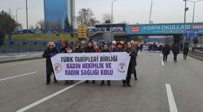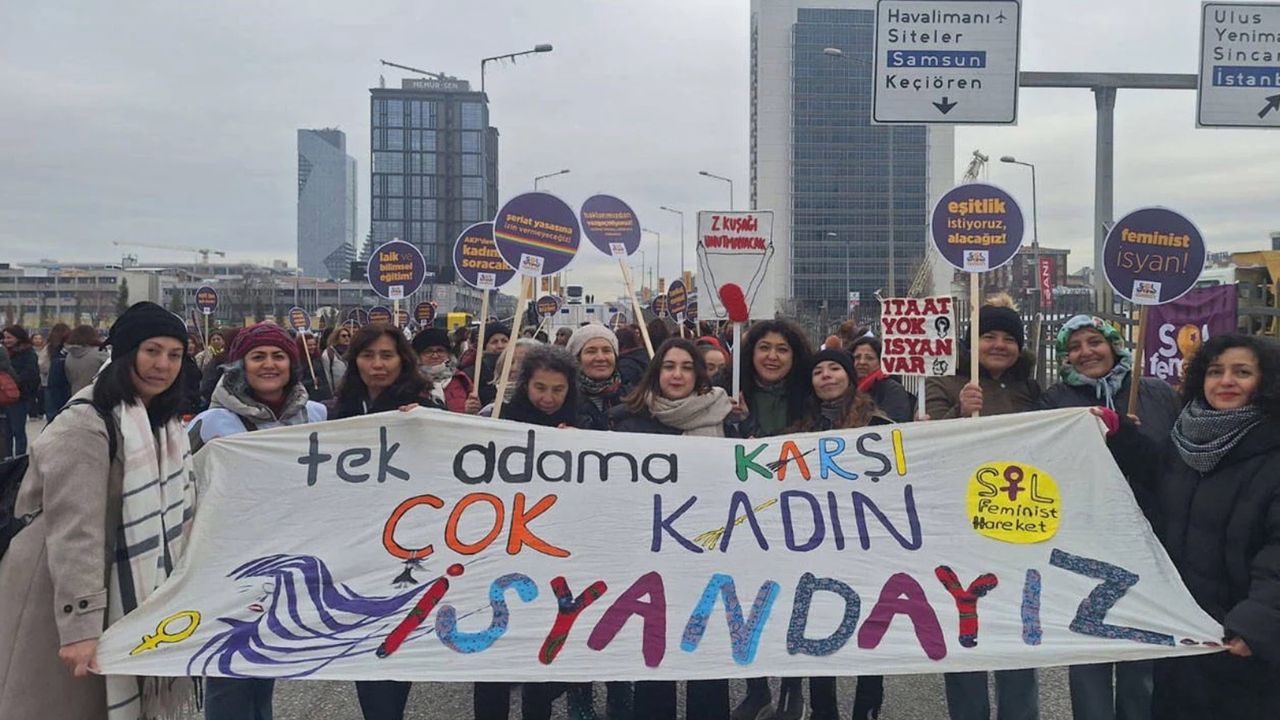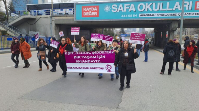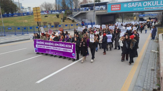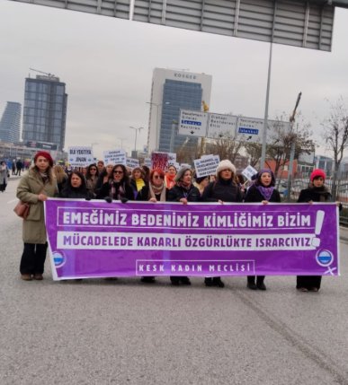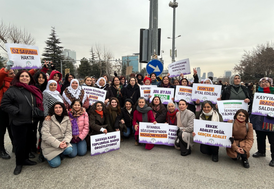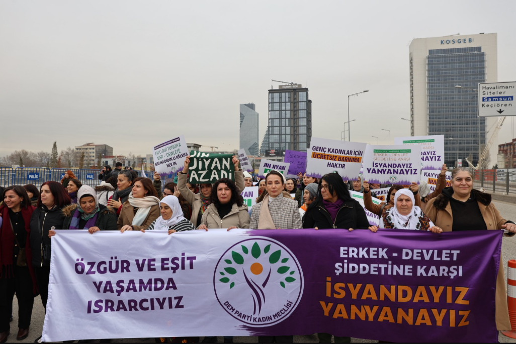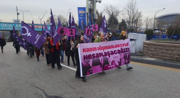 “Bugün burada kadınların yaşamını hiçe sayan düzene karşı itirazın kendisi olarak duruyoruz. Haklarımıza, hayatlarımıza, emeğimize, bedenimize ve kimliğimize sahip çıkıyoruz. Hayatlarımız bu iktidarın tasarruf alanı değildir.”