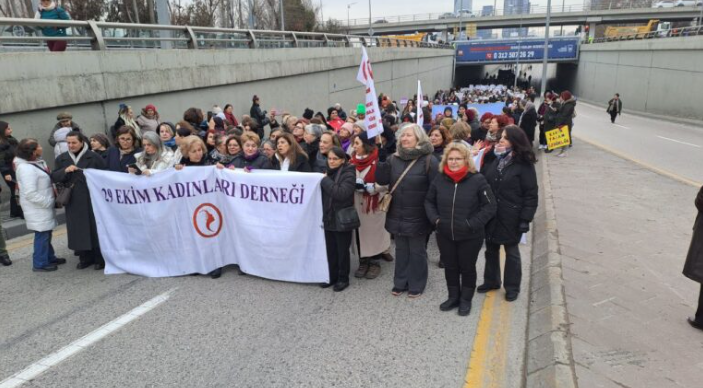 Mitingin açılış konuşmasını 29 Ekim Kadınlar Derneği Başkanı Şenal Sarıhan yaptı. Sarıhan, kadın cinayetleriyle kadınların en temel hakları olan yaşam hakkından mahrum bırakıldığını belirterek, 6284 sayılı Kanun’un etkin uygulanmamasının ve İstanbul Sözleşmesi’nden çekilmenin kadına yönelik şiddeti artırdığını söyledi. Sarıhan, “Kadınlar olarak eşit olabiliriz, her şeyin sahibi olabiliriz. Bu birlikteliği önemsiyoruz” dedi.